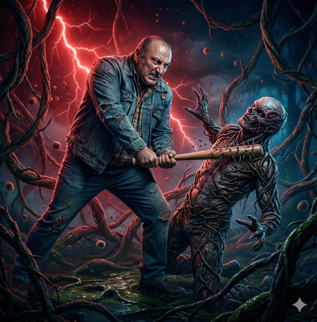 Make the person in the image in a Stranger Things scene. Change the clothes also, so they match the style of the series. Make the whole vibe match Stranger Things. The person does not have to have the same pose or clothes, but face and figure should match with the uploaded image.