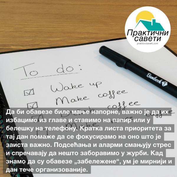 Кад знамо да су обавезе „забележене“, ум је мирнији и дан тече организованије.