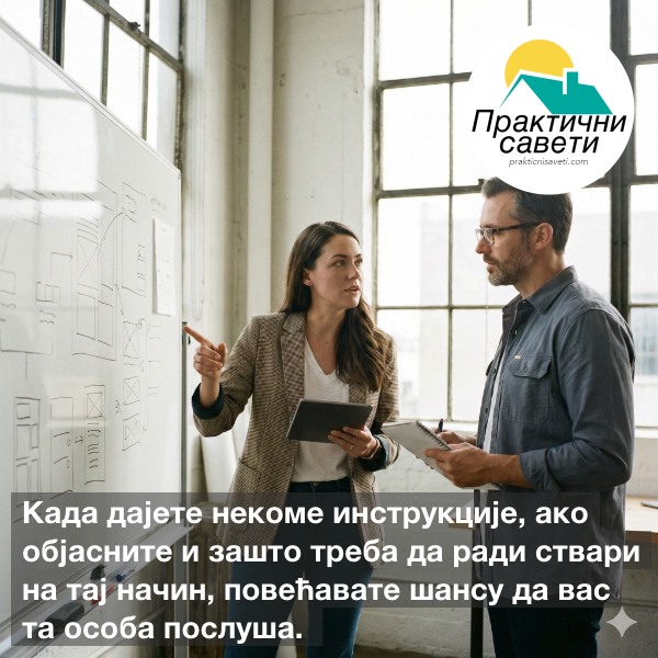 Када дајете некоме инструкције, ако објасните и зашто треба да ради ствари на тај начин, повећавате шансу да вас та особа послуша.