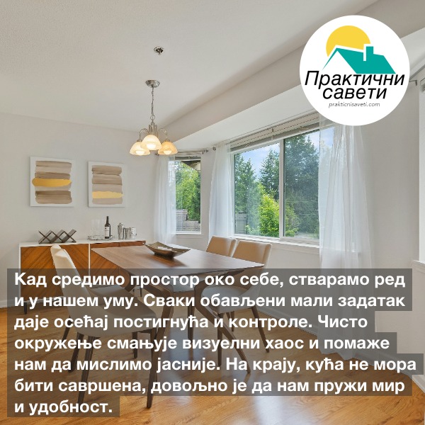 Кад средимо простор око себе, стварамо ред и у нашем уму. Сваки обављени мали задатак даје осећај постигнућа и контроле.…